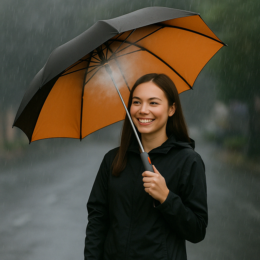 Say goodbye to disposable batteries. The umbrella includes a rechargeable battery system powered by a standard USB cable. A single charge supports several hours of fan or mist operation, depending on use settings. Plug into a power bank, car charger, or USB outlet to recharge anytime.