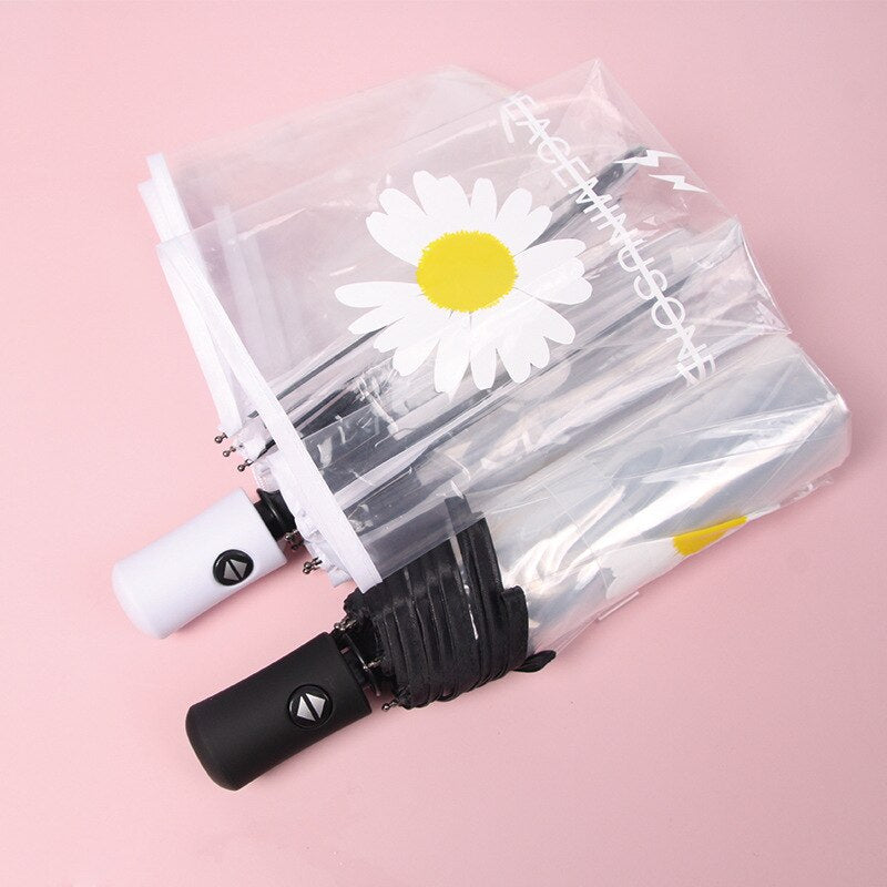 Upgrade your style with the Automatic Transparent Daisy Umbrella, a transparent fully automatic three-folding umbrella made from nylon cloth available in a variety of colors suitable for every style. It is super trendy and playful which provides a style statement making it ideal for gifting on every occasion.