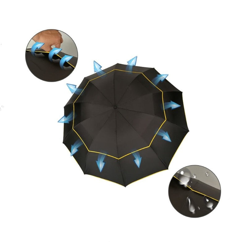 Double Layer Windproof Large 3 Folding Travel Outdoor Umbrellas