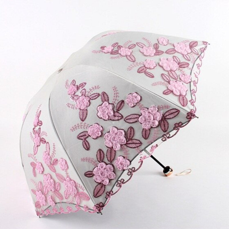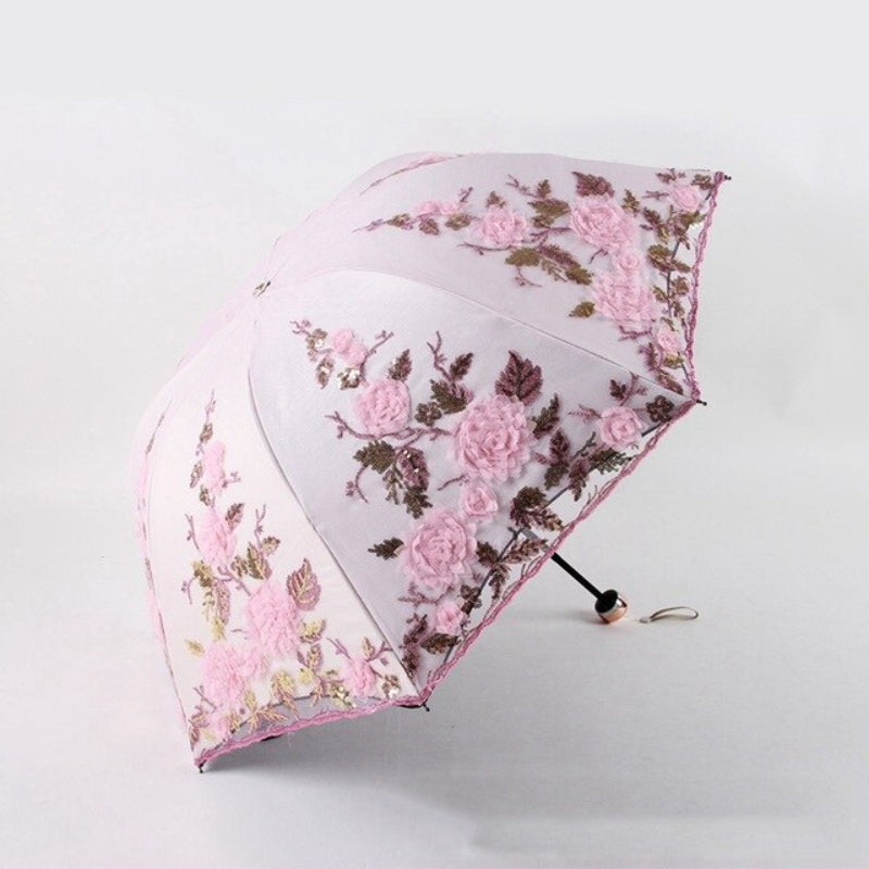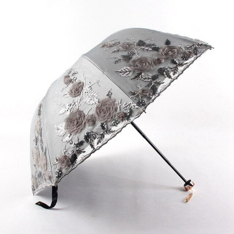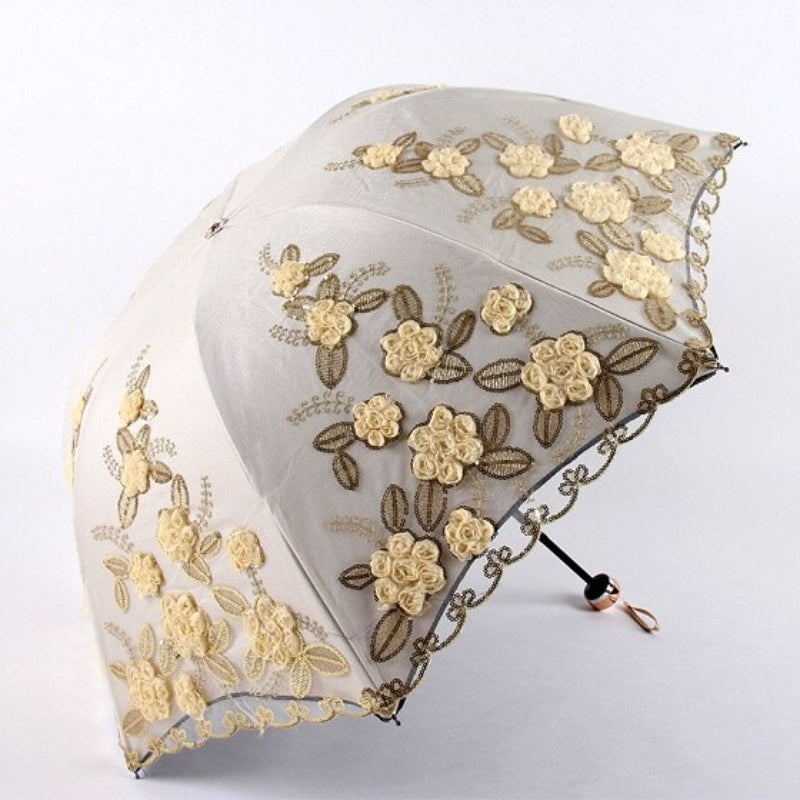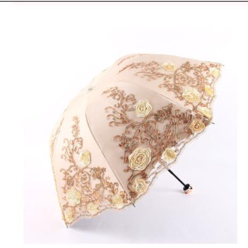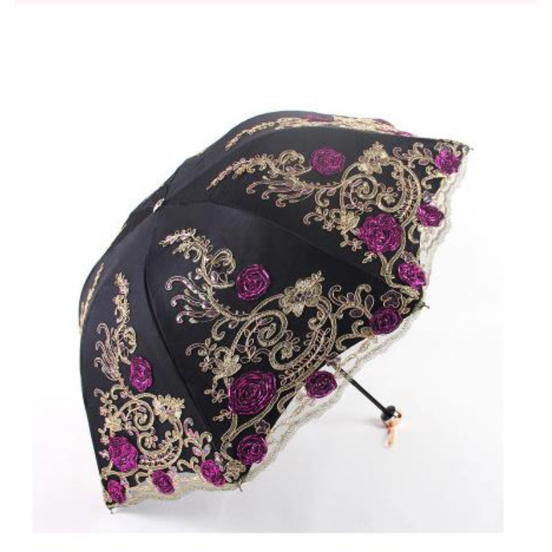 Enhance you look with Flower Embroidery Ladies Women Umbrella is a medium-sized umbrella which has a black coating along with lace on the top to make them look stylish. It is super trendy and windproof dual-folding Outdoor Umbrella which is suitable for every occasion. It has an anti-rust and non-slip handle along with a good sunscreen and heat insulation and keeps you cool during summers.