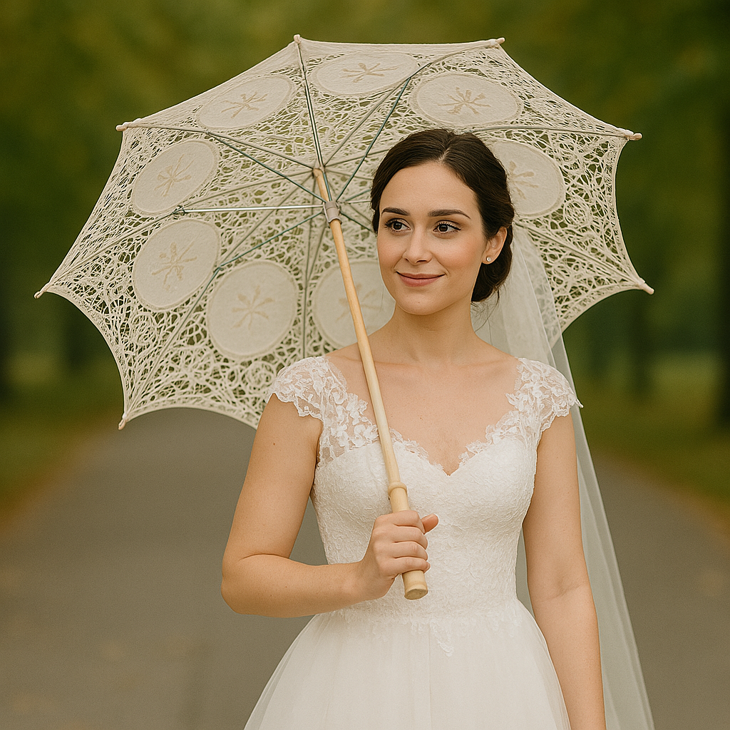This parasol focuses purely on style. It’s crafted for indoor displays and visual setups that benefit from delicate detail and graceful design. While it cannot function as weather protection, it stands out in its ability to complete looks and add character to special moments. It offers creative possibilities for decorators, photographers, or anyone looking to add a handcrafted look to their event or space. Lightweight and easy to place, it brings beauty without complexity.