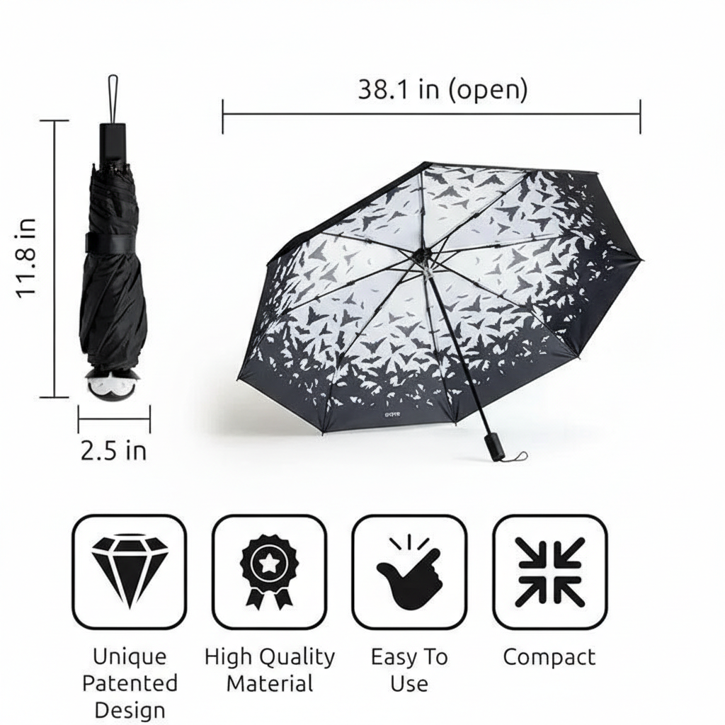 The Lightweight Travel Umbrella structure allows efficient daily use without excess weight. Its folding system ensures smooth opening and closing while maintaining frame alignment.