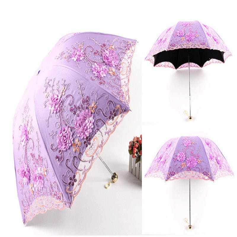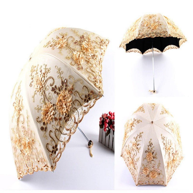 Princess Sun Double Lace Three Folding Women Umbrella