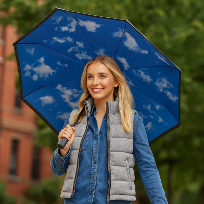 The reverse umbrella improves on traditional styles by folding in the opposite direction. This inward folding action holds water inside the canopy and prevents floors or interiors from getting soaked. Ideal for entryways, doorways, and vehicle doors, it gives you a cleaner way to transition from outdoors to indoors.