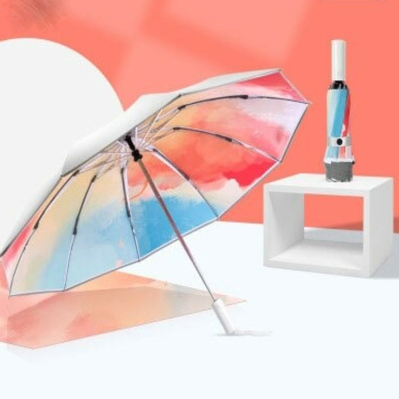 These Unisex Parasol Folding Umbrella are windproof auto-open umbrella, that is fortified with metal frame ribs to withstand the powerful wind without turning inside out. UV protective Canopy made of premium high-density waterproof polyester fabric, our classic umbrella for travel can effectively prevent rainwater from penetrating down, useful color umbrellas for rain.