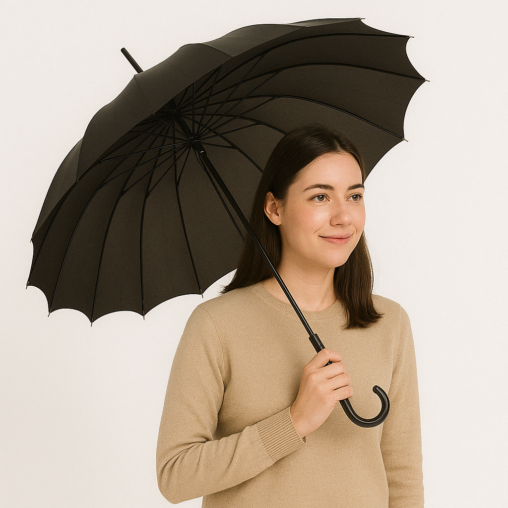 The umbrella features a solid metal frame engineered to withstand light wind conditions. While not designed for extreme storms, it provides reliable support during everyday use and helps maintain the umbrella’s layered form.